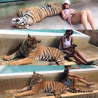 The following morning we woke up and headed to Phuket to get more of the vacation vibes and less of the city vibes because we wanted to get a good amount of both. It was hot as hell out there, so the first thing we did was hop into one of the pools at our lovely hotel, The Westin Siray Bay Phuket Thailand. We relaxed for the first day, and when we woke up the following morning we were out for some adventure and bucketlisting. Our first stop was to Tiger Kingdom Phuket, where we were able to play with some tigers and although we were scared out of our mind at first, after a while we felt like we made some new friends. From there, we headed over to do some elephant trekking, and stopped and played with some monkeys.. Well, to be honest I was a little scared, but my girlfriend Jericha is an animal whisperer, so they were best friends.